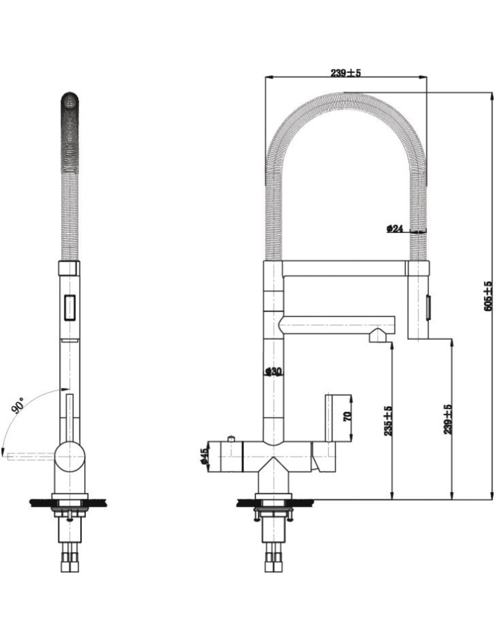 Let op: Vanwege de grootte en zwaarte van de XL kraan; deze NIET op een laminaat werkblad of direct op een kunststof of RVS spoelbak plaatsen.