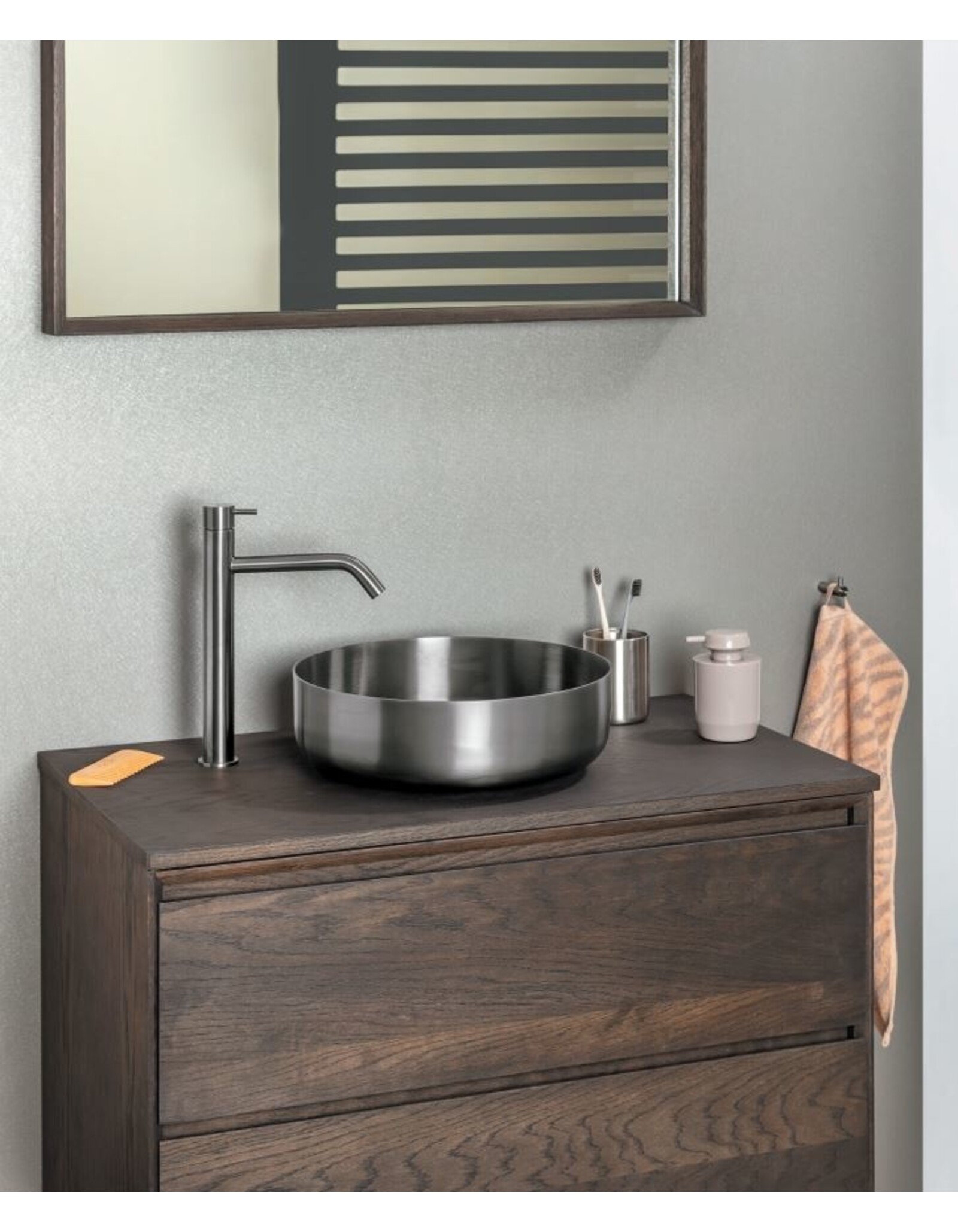 De wastafel is in de kleur Gold / Goud en de behuizing is gemaakt van het materiaal RVS. RVS is een sterk en hittebestendig materiaal. Daarnaast is het ook hygiënisch. RVS is ook onderhoudsvriendelijk en makkelijk te combineren met andere materialen in je badkamer.