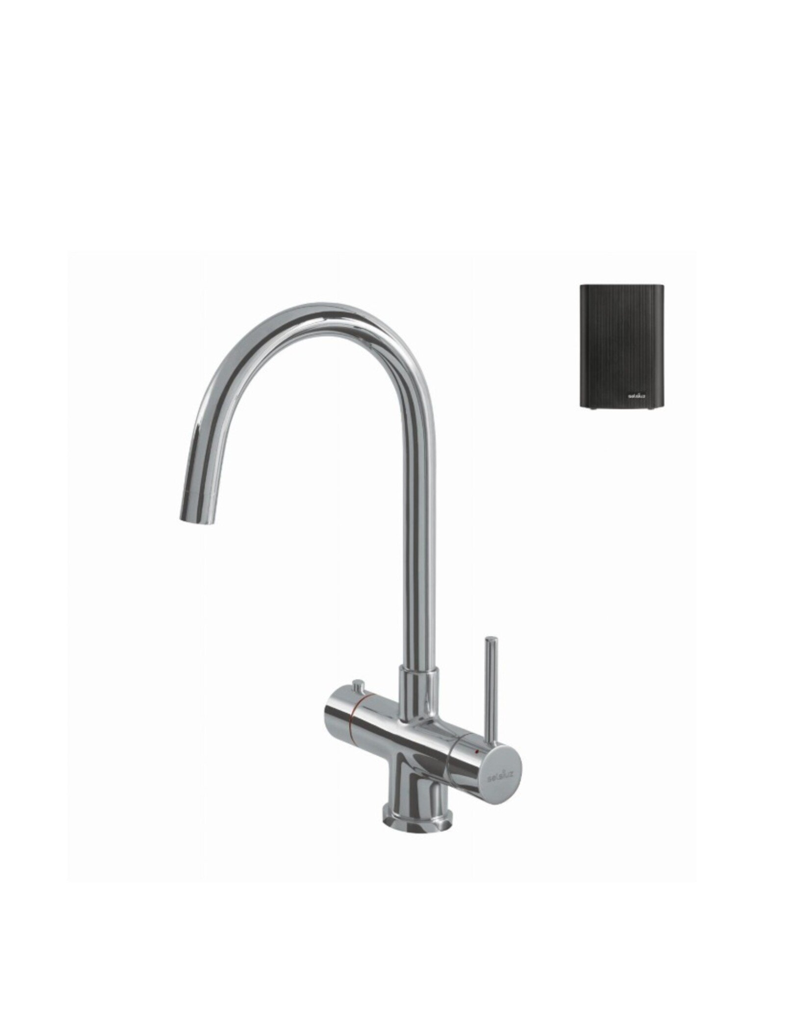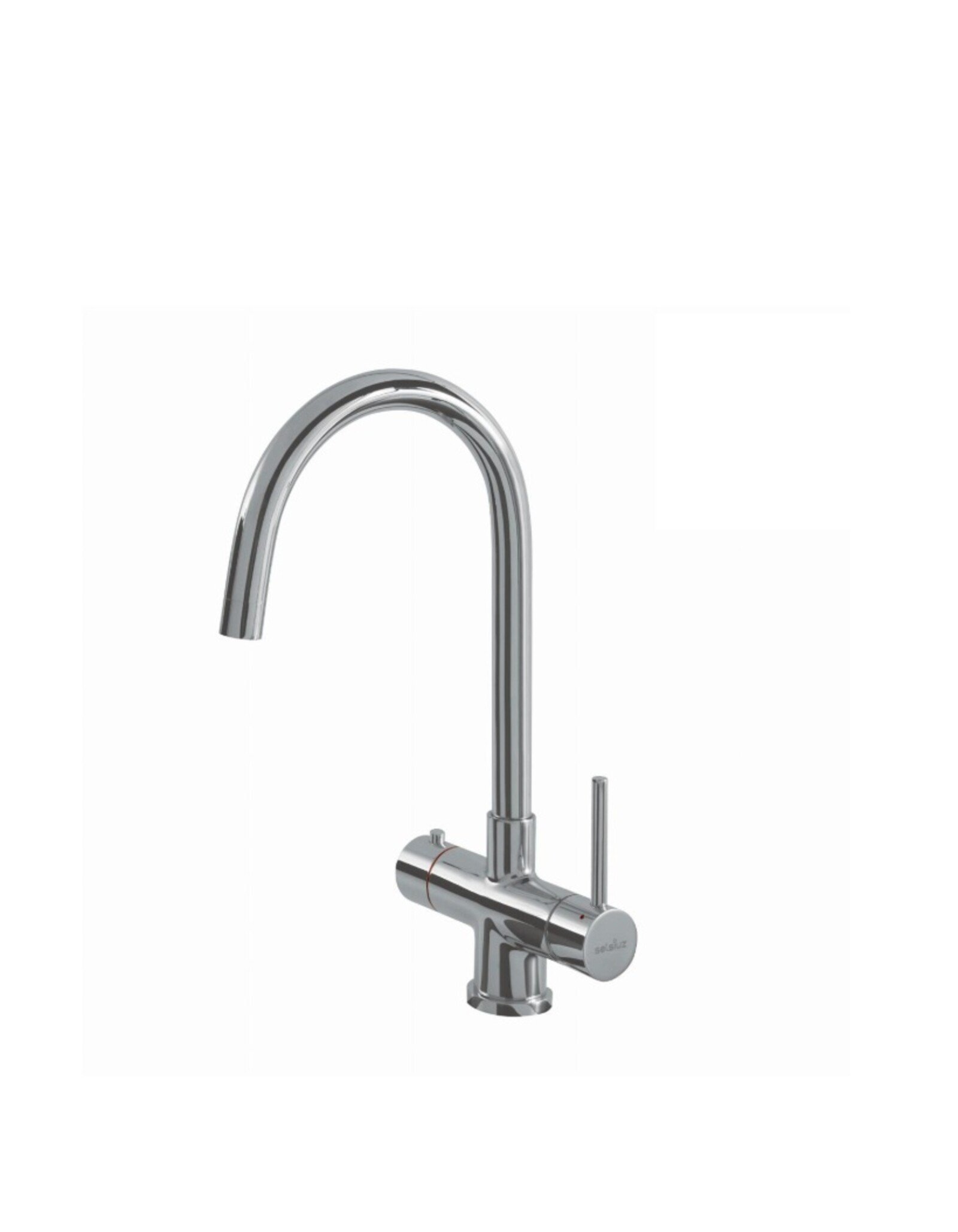 Met de Selsiuz Push & Turn 3-in-1 Rond Chrome Chroom kokend waterkraan heb je maar één kraan op het aanrecht voor koud, warm en kokend water.