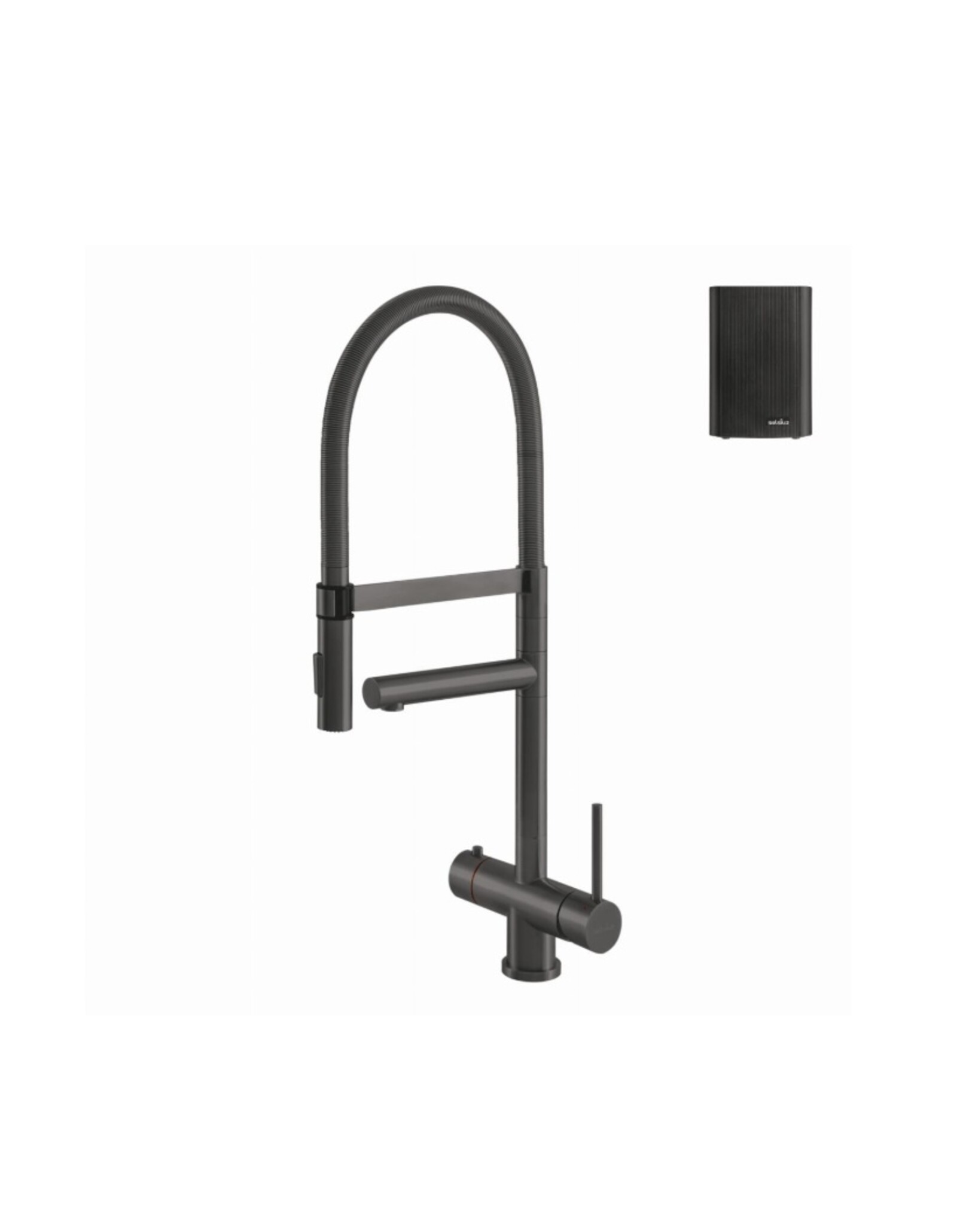 De Selsiuz Push & Turn 3-in-1 XL Gun Metal met Single Boiler is een 3-in-1 kraan met een heel opvallend design.